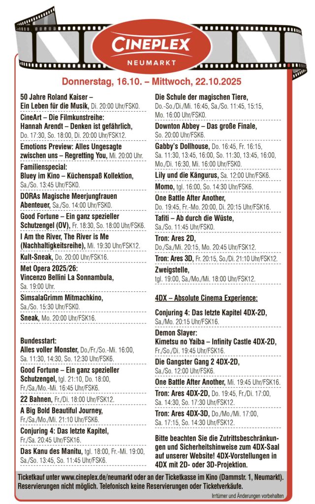 StartKurz und wichtig KINOPROGRAMM CINEPLEX NEUMARKT Bild von Gerd Altmann auf Pixabay Anzeige teilen teilen teilen teilen teilen teilen Wir auf Social Media7,973FansGefällt mir2,291FollowerFolgen2,030AbonnentenAbonnieren Aktuelle Nachrichten NMTV VERANSTALTUNGSTIPPS „Der 9. Oktober – kein Tag wie jeder andere! 🇩🇪✨ Anzeige Aktuelle Nachrichten Kleinanzeigen Kleinanzeigen aus Neumarkt und der Region vom 08. Oktober 2025 Kurz und wichtig KINOPROGRAMM CINEPLEX NEUMARKT NMTV POLITIK 😄 Witz der Woche zum Wochenende Kleinanzeigen Kleinanzeigen aus Neumarkt und der Region vom 01. Oktober 2025 Kurz und wichtig KINOPROGRAMM CINEPLEX NEUMARKT Das könnte Sie auch interessieren Kleinanzeigen aus Neumarkt und der Region vom 08. Oktober 2025 7. Oktober 2025 KINOPROGRAMM CINEPLEX NEUMARKT 7. Oktober 2025 Kleinanzeigen aus Neumarkt und der Region vom 01. Oktober 2025 30. September 2025 KINOPROGRAMM CINEPLEX NEUMARKT 30. September 2025 Kleinanzeigen aus Neumarkt und der Region vom 24. September 2025 23. September 2025 Kleinanzeigen aus Neumarkt und der Region vom 17. September 2025 16. September 2025 Mehr laden